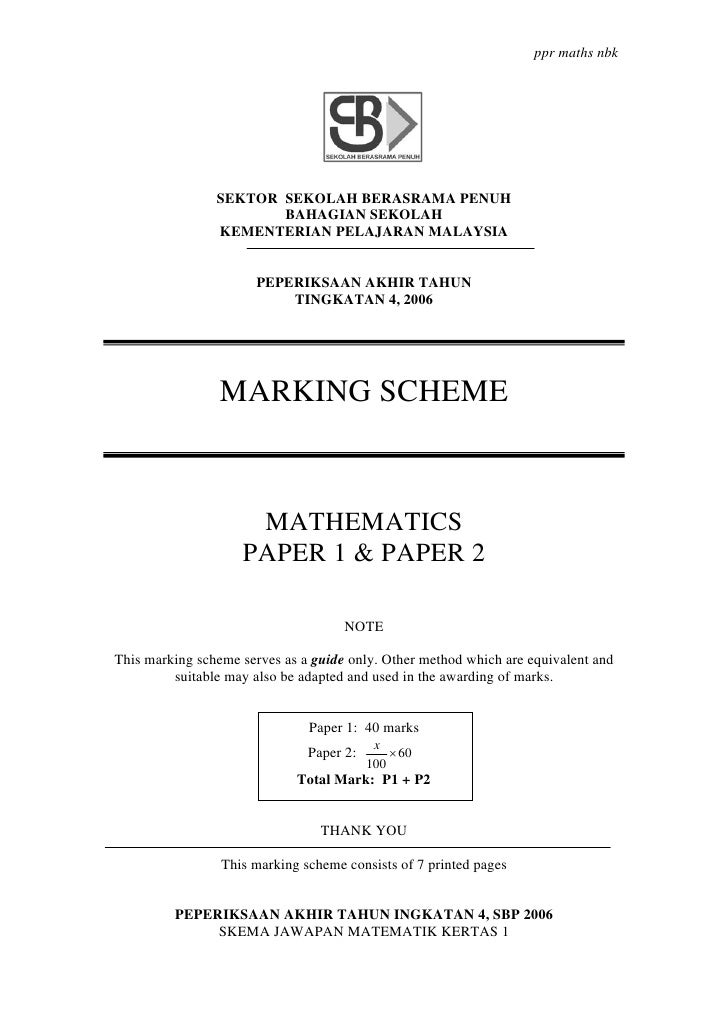 F4 Final Sbp 2006 Math Skema P 1 & P 2 via www.slideshare.net